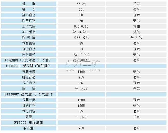 | 配套氣腿 | FT160BC | FT160BD |