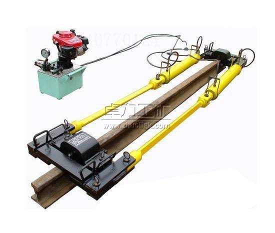 c.調整安裝設置。油缸口端面要探出所在鋼軌端面以外40毫米左右。然后打緊兩端楔鐵。如果拉軌長度在300毫米以上,油缸端面要探出所在鋼軌端面以外160毫米左右。