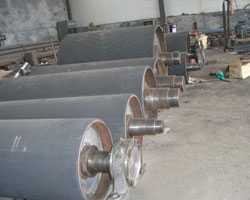 滾筒包膠和鑄膠主要是增加滾筒的摩擦系數(shù),只是工藝上的不同,包膠易施工,鑄膠在工藝上較復(fù)雜些,首先在滾筒上車出螺旋線、然后再涂膠,要確保滾筒的同心度。